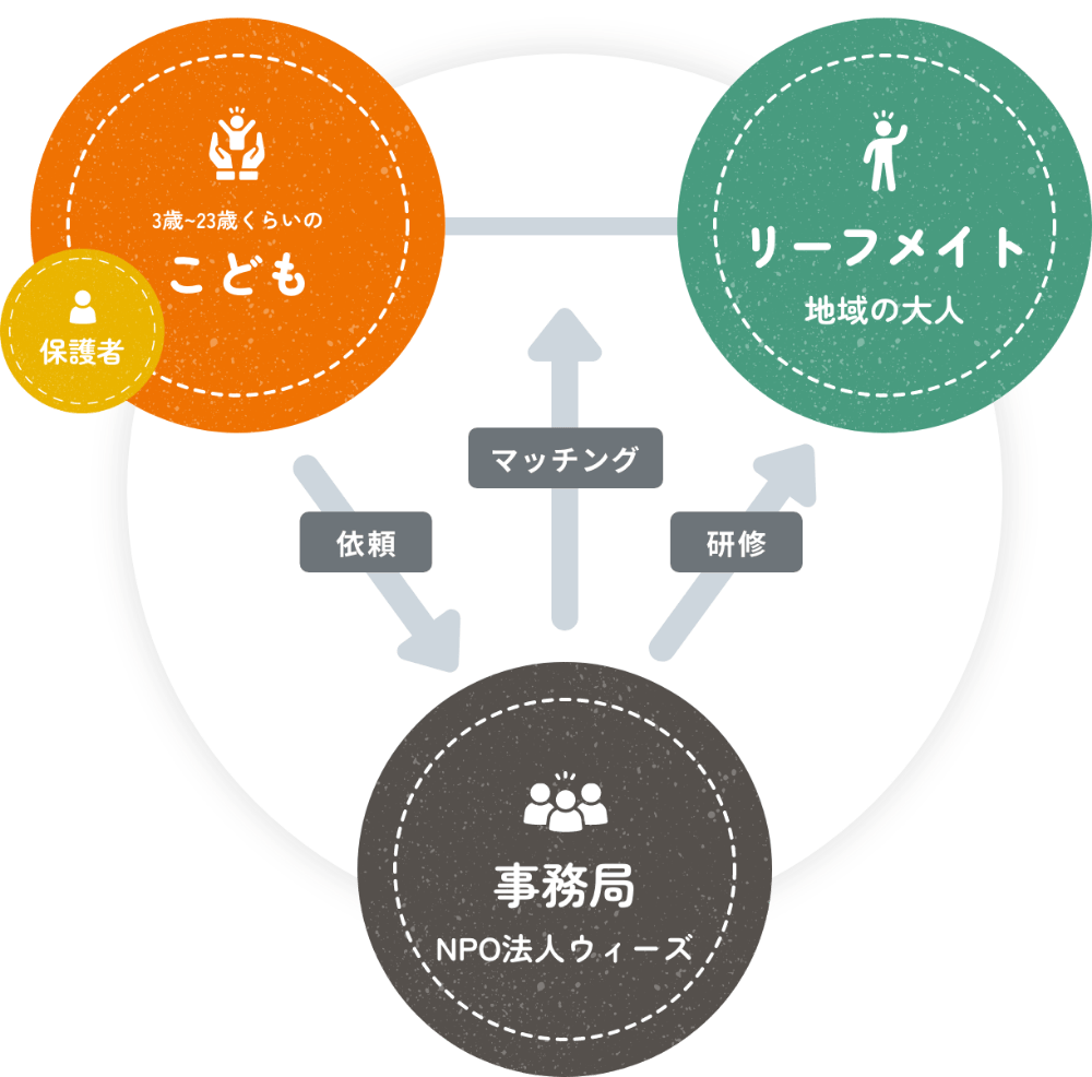 こどもと親以外の頼れる地域の大人をマッチングするリーフメイトの仕組みを、
